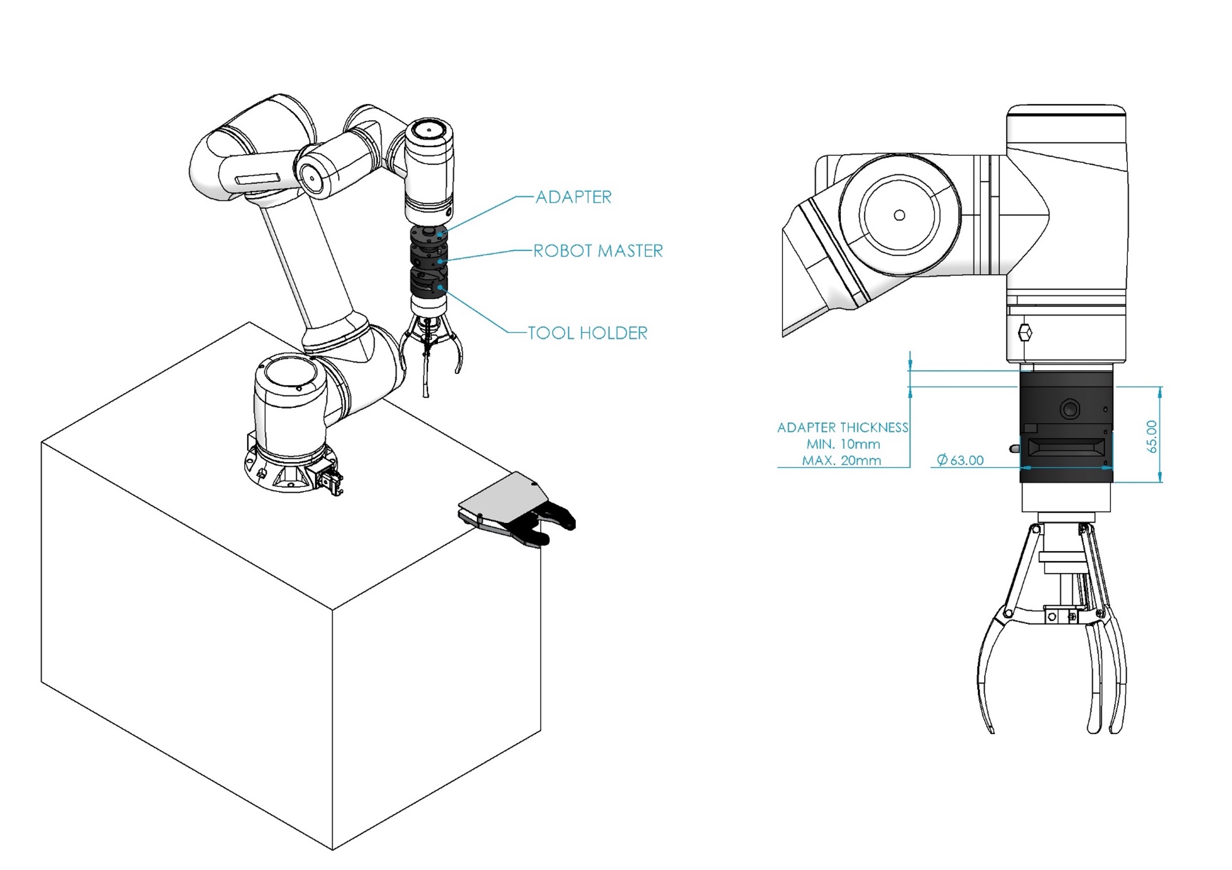 Manual of Automatic Tool change where there is no need for Air, vacuum, or electric EOAT.